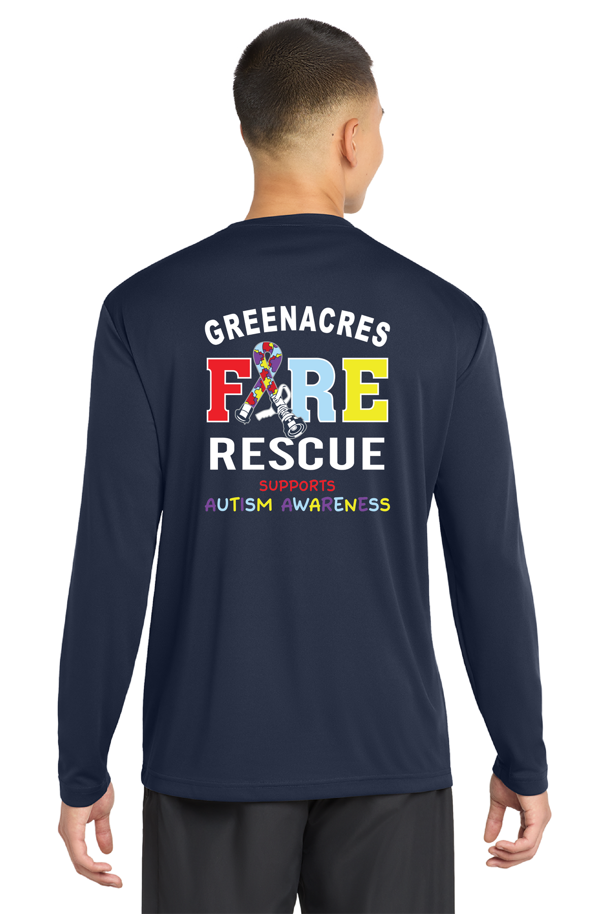 TALL VERSION GFR Autism Long Sleeve NAVY Crew Neck 100% Poly Moisture wicking